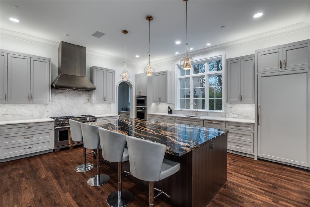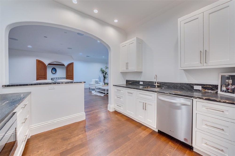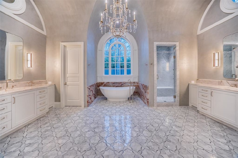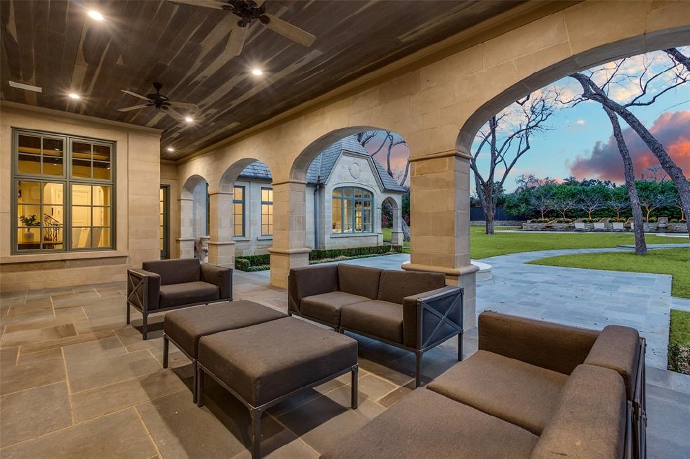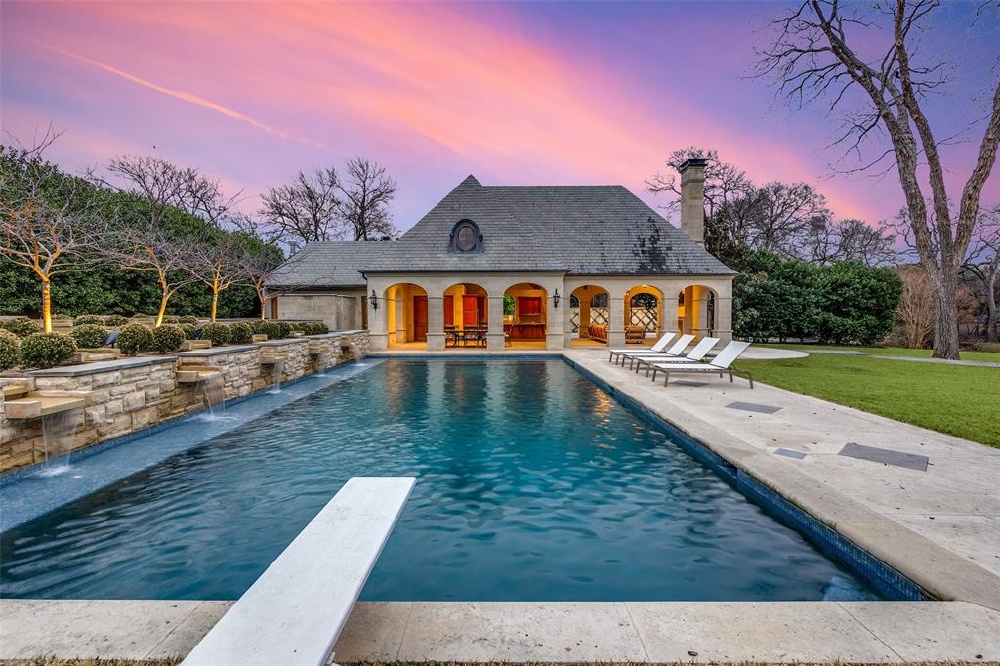 This Private French Estate with tennis court is nestled behind secure gates on two beautifully landscaped acres, offering timeless architecture, extraordinary privacy, & extensive recent upgrades. Built by Cy Barcus and designed by renowned architect Wilson Fuqua, the 11,056-square-foot residence showcases impeccable craftsmanship, grand scale, & sophisticated living. A dramatic foyer with a sweeping staircase opens to elegant formal living & dining spaces, refined archways, & a gracious family room featuring a fireplace, bar, & wine cellar. The fully renovated gourmet kitchen is equipped with new custom cabinetry, countertops, Wolf & Sub-Zero appliances, oversized island, double ovens, built-in refrigeration, & a butler’s pantry. The oversized primary suite is secluded on the main level & includes a sitting area with blackout shades, fireplace, expansive his-and-hers closets, & a completely remodeled spa bath with designer finishes. Upstairs offers four spacious ensuite bedrooms plus a large game room & kitchen. Designed for effortless entertaining, the home features exceptional indoor-outdoor flow to a resort-style backyard with pool, outdoor kitchen, covered living areas, cabana, & tennis court. Extensive Improvements & Features Include: RTI smart home system; Lutron lighting; designer tile by Ann Sacks, Walker Zanger, & Artistic Tile; updated bar, family room, study, dining room (with hand-painted Allan Knight wallpaper); new mini kitchen upstairs; new water filtration system, thermostats, sewer line, chimney cap; three-car garage with EV charging in each bay; Complete wood, iron, & chain-link perimeter fencing for maximum security; Expanded drive & improved motor court & porte cochère; Renovated fountain with bluestone surround & new pool walkway, & MORE! A rare opportunity to own an updated, architecturally significant estate offering privacy, scale, & luxury amenities in a premier Dallas location. Conveniently located near the private school corridor!