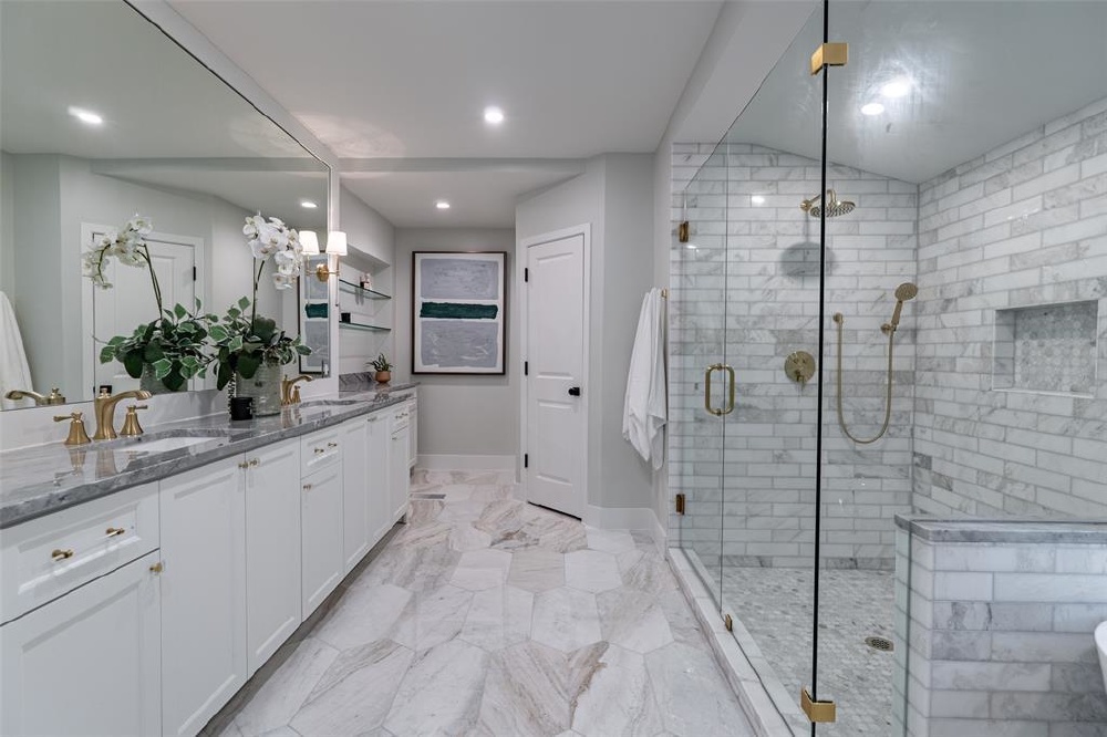 4541 Westway, an opulent single-family residence nestled in the prestigious Highland Park community and zoned to Bradfield Elementary. This home has undergone a meticulous transformation, taken down to the studs and thoughtfully remodeled to offer luxury living. The property is on an 80x121 lot, and was originally 5,455 sq ft, but an additional 151 sq ft was added, for a total of 5,606 sq ft. As you enter, you are welcomed by two living areas, a dining room, and open kitchen, creating an inviting ambiance for both intimate gatherings and entertaining. The gourmet kitchen is a chef's dream, equipped with top-of-the-line appliances, including a Subzrero refrigerator and a professional-grade gas range. The magnificent island, adorned with stunning Taj Mahal quartzite, serves as the centerpiece for culinary creativity and casual dining. Adjacent to the kitchen, the breakfast room boasts a sophisticated bar area, perfect for hosting. The primary suite, on the main level, offers a private retreat with ample space. A secondary bedroom or flex space adjacent can easily serve as a nursery or refined study, complete with a full bath for added convenience. Ascend to the upper level, where you will discover a game room featuring a fireplace and an additional sitting area, ideal for relaxing with family or entertaining friends. Four additional bedrooms, each with its en-suite bath, providing privacy and comfort. The unique four-car garage is complemented by a guest room, pre-plumbed for convenience. Every inch of this residence has been curated with premium finishes, showcasing a commitment to luxury and style. Don’t miss the opportunity to claim this remarkable Highland Park residence as your own. Close to parks, retail, and highways.