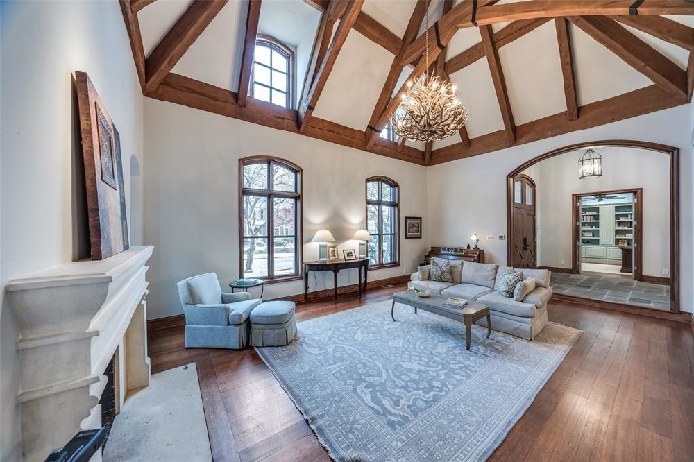 This elegant updated traditional home with ELEVATOR is designed by renowned architect Stephen Chambers, and is located in the sought after Highland Park neighborhood within the prestigious HPISD. Blending classic charm with modern convenience, the home boasts numerous recent upgrades, including completely updated bathrooms and refinished wood floors for a fresh, sophisticated look. The downstairs offers a beautiful study or optional fifth bedroom with built ins and a full bath, two living areas with fireplaces, one with a beautiful vaulted ceiling, two dining areas, kitchen, and a powder bath. The home features beautiful masonry and woodwork throughout adding a dramatic flair to the spaces. The kitchen itself is a chef's dream, featuring a Wolf gas cooktop, a new Bosch dishwasher, and double GE ovens, while the adjacent laundry room leads to a butler's pantry and wet bar-perfect for entertaining. The charming side patio off the kitchen is equipped with a gas hookup for easy outdoor grilling. A grand staircase and refurbished elevator provide seamless access to the second floor, where the spacious primary suite includes a coffee bar, fireplace and elevator access for ultimate comfort. The luxurious primary bath features dual sinks, a freestanding tub, a spacious shower, two large walk in closets, and a balcony, creating a true retreat in this stunning Highland Park home. A fourth bedroom or game room with new carpet provides an ideal space for guests or additional living. Home has ample storage and a stairwell to attic storage. The two car garage is enhanced with sleek epoxy flooring and storage. The front yard features a new irrigation system for effortless landscaping, while the backyard offers a heated pool and spa for year-round enjoyment. Additional upgrades include a new hot water heater for improved efficiency and two new Bryant HVACs service two of four zones. Easy walk to Armstrong Elementary, MIS, HPMS, SMU, Snider Plaza, Katy Trail, and Knox-Henderson.