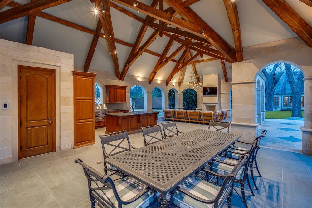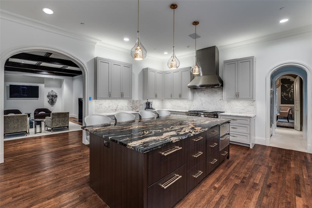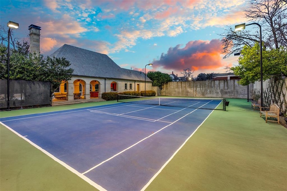 This Private French Estate with tennis court is nestled behind secure gates on two beautifully landscaped acres, offering timeless architecture, extraordinary privacy, & extensive recent upgrades. Built by Cy Barcus and designed by renowned architect Wilson Fuqua, the 11,056-square-foot residence showcases impeccable craftsmanship, grand scale, & sophisticated living. A dramatic foyer with a sweeping staircase opens to elegant formal living & dining spaces, refined archways, & a gracious family room featuring a fireplace, bar, & wine cellar. The fully renovated gourmet kitchen is equipped with new custom cabinetry, countertops, Wolf & Sub-Zero appliances, oversized island, double ovens, built-in refrigeration, & a butler’s pantry. The oversized primary suite is secluded on the main level & includes a sitting area with blackout shades, fireplace, expansive his-and-hers closets, & a completely remodeled spa bath with designer finishes. Upstairs offers four spacious ensuite bedrooms plus a large game room & kitchen. Designed for effortless entertaining, the home features exceptional indoor-outdoor flow to a resort-style backyard with pool, outdoor kitchen, covered living areas, cabana, & tennis court. Extensive Improvements & Features Include: RTI smart home system; Lutron lighting; designer tile by Ann Sacks, Walker Zanger, & Artistic Tile; updated bar, family room, study, dining room (with hand-painted Allan Knight wallpaper); new mini kitchen upstairs; new water filtration system, thermostats, sewer line, chimney cap; three-car garage with EV charging in each bay; Complete wood, iron, & chain-link perimeter fencing for maximum security; Expanded drive & improved motor court & porte cochère; Renovated fountain with bluestone surround & new pool walkway, & MORE! A rare opportunity to own an updated, architecturally significant estate offering privacy, scale, & luxury amenities in a premier Dallas location. Conveniently located near the private school corridor!