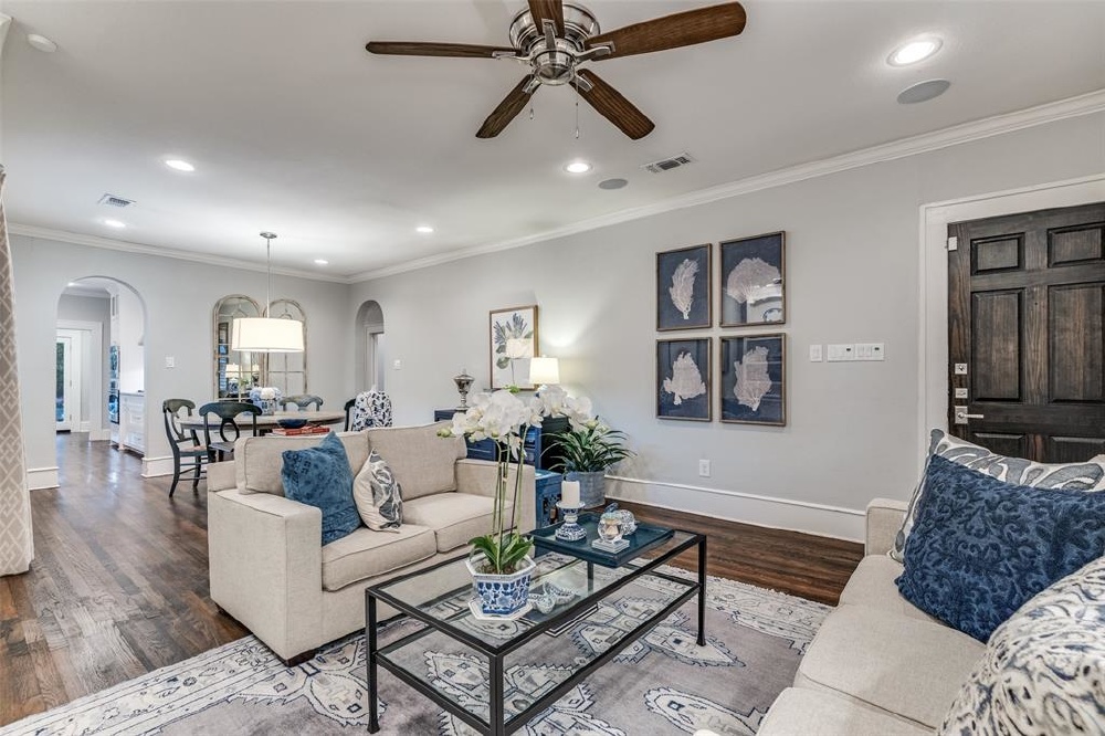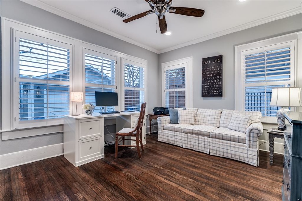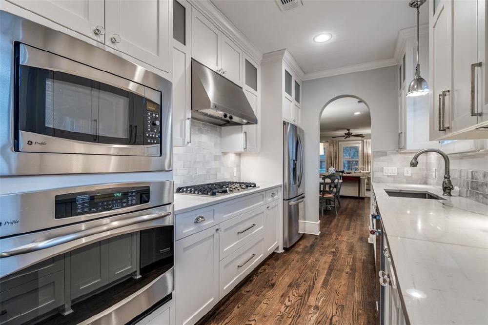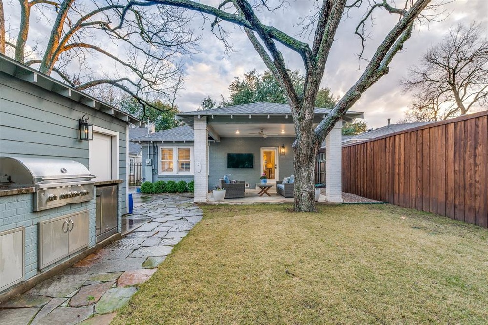 M Streets perfection meets thoughtful modern updates. This beautifully renovated 1920’s Tudor with a great floor plan is a 3-bedroom, 2-bath home offers timeless character with today’s comforts, complete with a 2-car garage and gated drive. Hardwood floors flow throughout as you enter the open-concept living and dining areas, featuring a fireplace, built-in shelving, and abundant natural light streaming through plantation-shuttered windows. The updated kitchen is both stylish and functional, with quartz countertops, GE appliances, a new wine refrigerator and dishwasher, plus a generous walk-in pantry. Just beyond, a full-service mudroom provides exceptional storage, a sink, and full-size washer and dryer—perfect for everyday living. The primary suite features an updated bath with a walk-in shower, dual sinks, and marble counter, while the secondary bedrooms are light-filled and versatile. Secondary bath has quartz counter. Enjoy fabulous outdoor living spaces with covered front porch & back patio that include a built-in grill, grassy spaces, 9’ privacy fence, and professional landscaping — the mature magnolias create a serene retreat. Large shade trees frame both the front and back yards. Additional improvements include ductwork, insulation, and plumbing, as well as newer roof with radiant barrier, HVAC & tankless water heater, oversized garage with automatic gate - making this home as practical as it is charming. A rare opportunity in one of Dallas’ most beloved neighborhoods. Mockingbird Elementary all perfectly situated to Greenville, Mockingbird & 75.